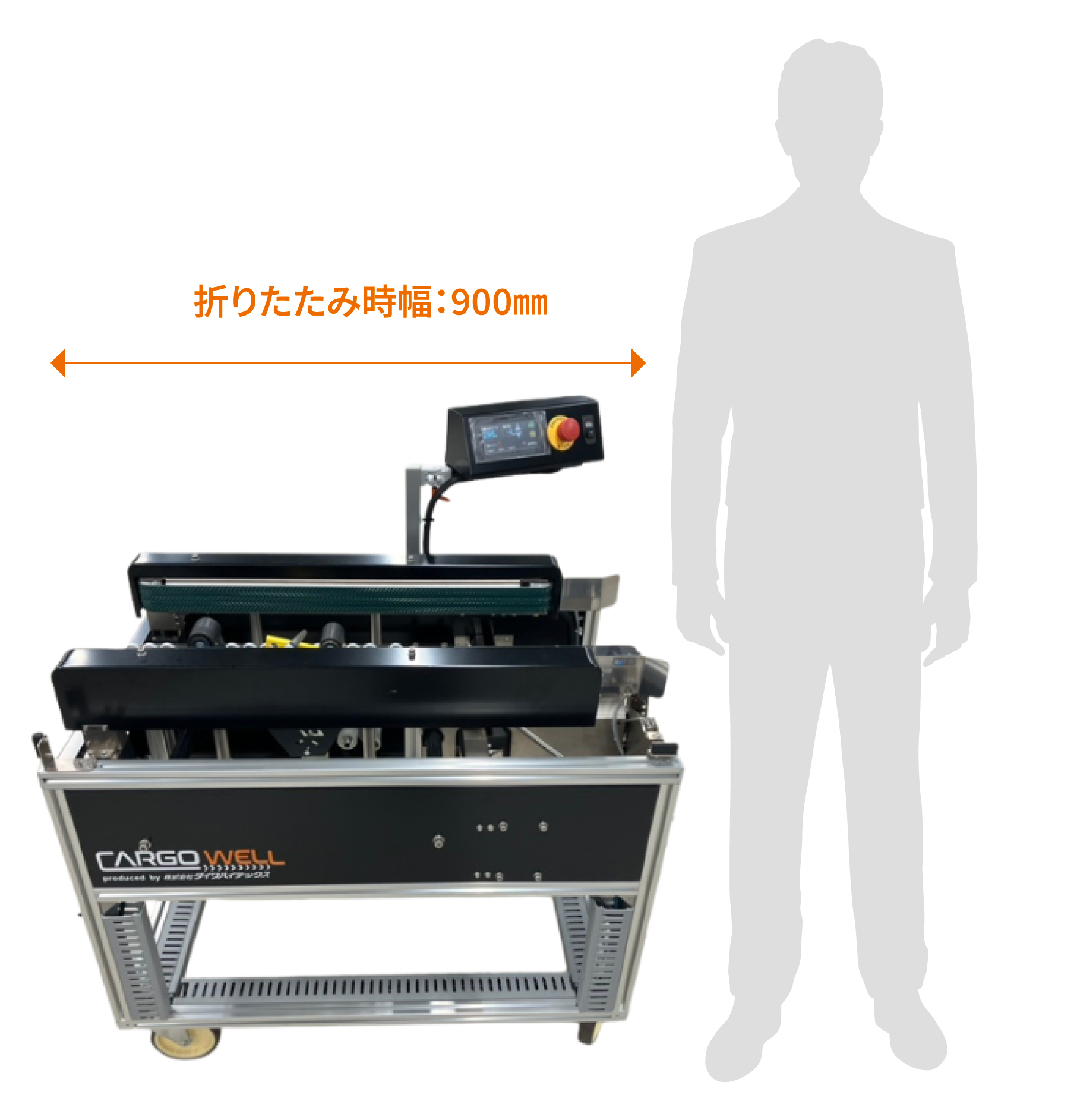 | 機械サイズ | L:1,530mm (フラップ折り畳み時900㎜) W:600mm H:1060mm |